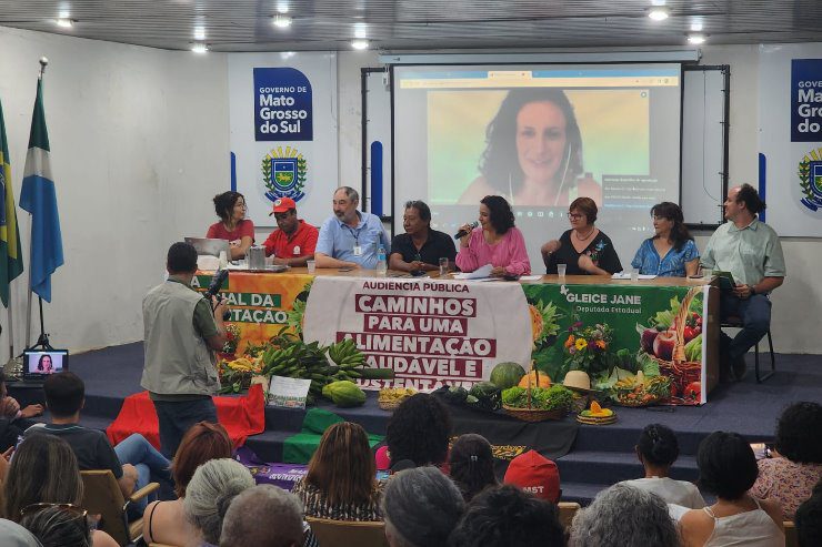 Em todo o mundo, 2,4 bilhões de indivíduos estão em situação de insegurança alimentar e, no Brasil, a fome atinge 33 milhões de pessoas. Esse problema afeta diversas regiões do planeta, inclusive as que têm condições favoráveis para enfrentá-lo, como é o caso de Mato Grosso do Sul. Para buscar saídas à fome e à insegurança alimentar e promover a produção de alimentos saudáveis, a Assembleia Legislativa deve criar uma frente parlamentar com o objetivo de implementar políticas públicas sobre o tema. O assunto foi discutido na tarde desta segunda-feira (16) durante a audiência pública “Caminhos para uma alimentação saudável e sustentável”. O evento, proposto pela deputada Gleice Jane (PT), aconteceu no auditório da Agência de Desenvolvimento Agrário e Extensão Rural (Agraer), no Parque dos Poderes, em Campo Grande.