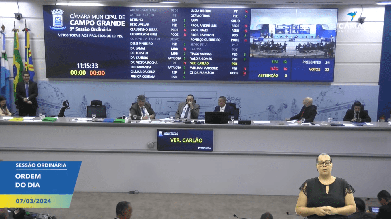 Na sessão desta quinta-feira (7), os vereadores da Câmara Municipal de Campo Grande aprovaram dois vetos do Poder Executivo. Eles também aprovaram em primeira votação o projeto de lei 11.011/23 e o PL 11.096/23.