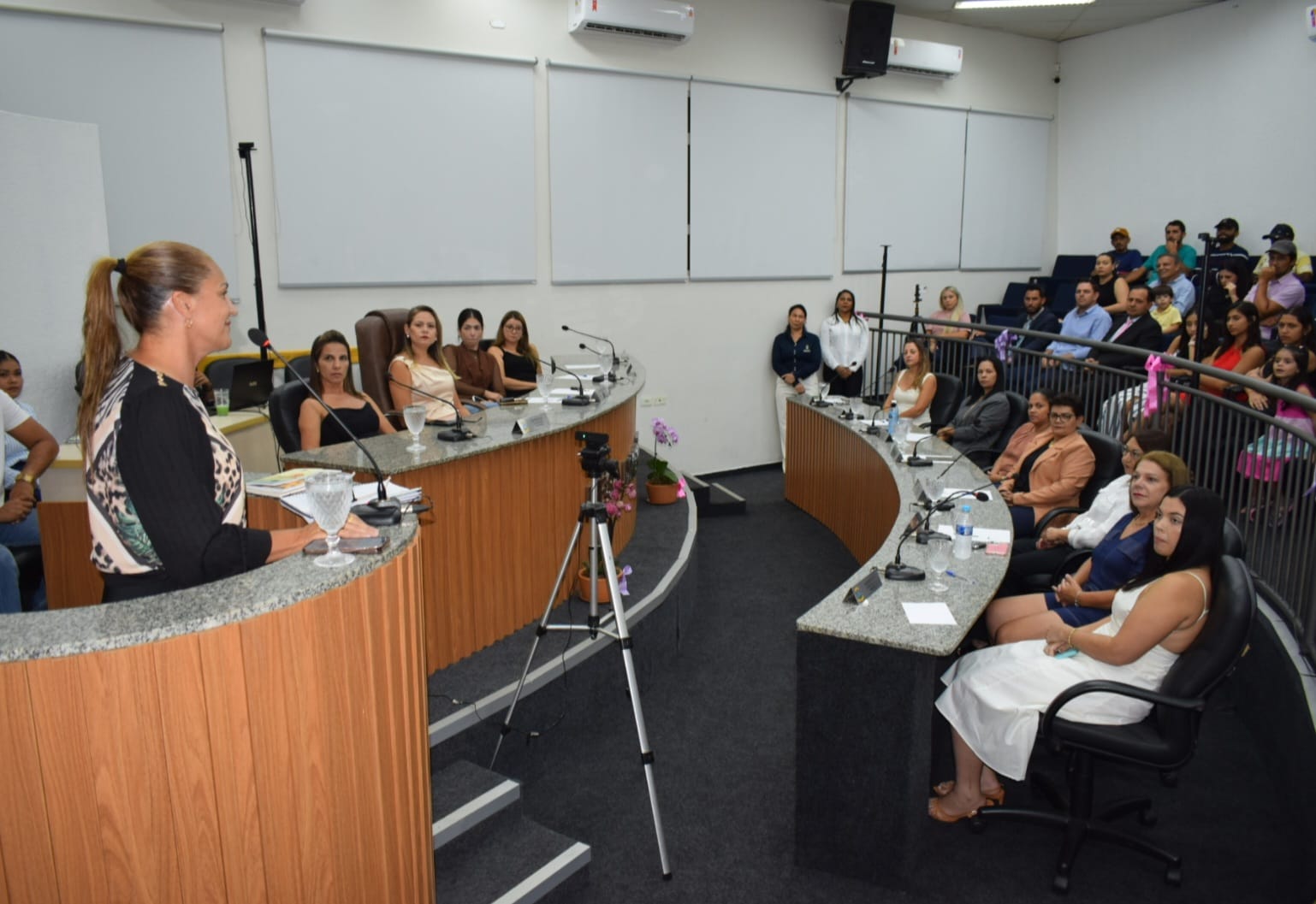 Durante o Grande Expediente, os parlamentares usaram a tribuna para enaltecer o papel feminino na gestão pública da cidade, com destaque para a atuação das secretárias municipais e da vereadora Marilda da Saúde, atual representante feminina no Legislativo.