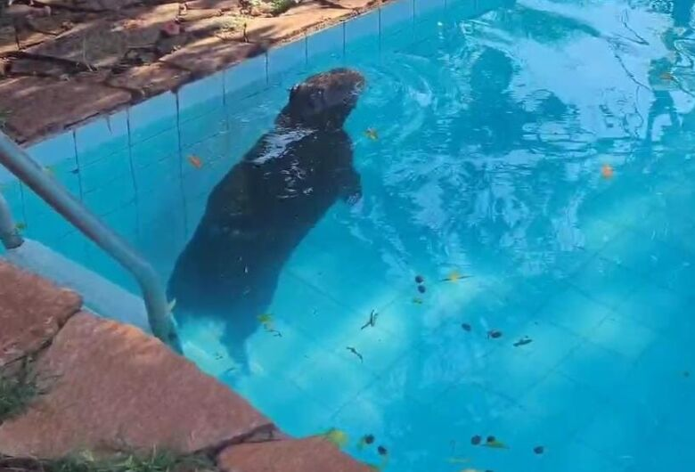 Segundo as informações policiais, o morador, de 81 anos, acionou a polícia depois de encontrar o animal nadando em sua piscina, sem conseguir sair.