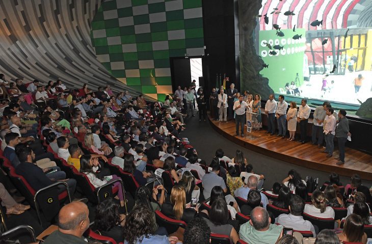 O governador, Eduardo Riedel, participou do lançamento do evento realizado no Bioparque Pantanal, em Campo Grande, junto com o reitor da UEMS, Laércio Alves de Carvalho.