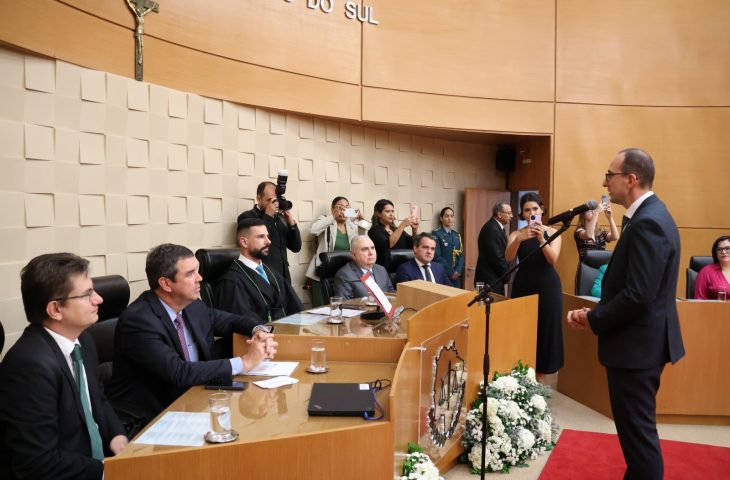 A posse do defensor público-geral foi realizada ontem (16) no TJMS (Tribunal de Justiça de Mato Grosso do Sul) e reuniu a secretária Patrícia Elias Cozzolino de Oliveira (SEAD), além do presidente do TJMS Sérgio Fernandes Martins, procurador-geral de Justiça (MPMS) Alexandre Magno Benites de Lacerda, e outras autoridades.