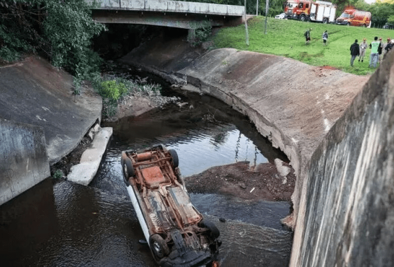 Na manhã desta quarta-feira, dia 20 de julho, uma pick-up Fiat/Strada, caiu dentro do córrego Sóter, na avenida Nelly Martins, na região do Bairro Monte Carlo, quase esquina com a rua Pernambuco, em Campo Grande. O motorista, identificado como Eder Viana, de 27 anos, contou que dormiu no volante.