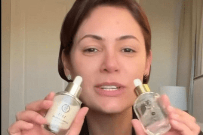“Oi, gente. Passando aqui pra mostrar pra vocês dois produtos que eu amo do meu amigo Augustin Fernandez”, afirma Michelle no primeiro vídeo. A esposa do ex-presidente Jair Bolsonaro (PL) diz ainda que usa um dos produtos antes de passar maquigem e o segundo, antes de dormir.