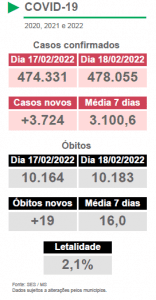 Confira aqui todos os detalhes do boletim epidemiológico Covid e Influenza desta sexta-feira, 18 de fevereiro de 2022.