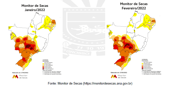 No comparativo entre os meses de janeiro e fevereiro, o relatório conclui que houve avanço da seca grave no centro do estado e da seca extrema na parte sudoeste do estado, em função das anomalias negativas de precipitação e piora nos indicadores. Por outro lado, devido às chuvas acima da média em fevereiro, houve recuo da seca excepcional e extrema no nordeste do estado.
