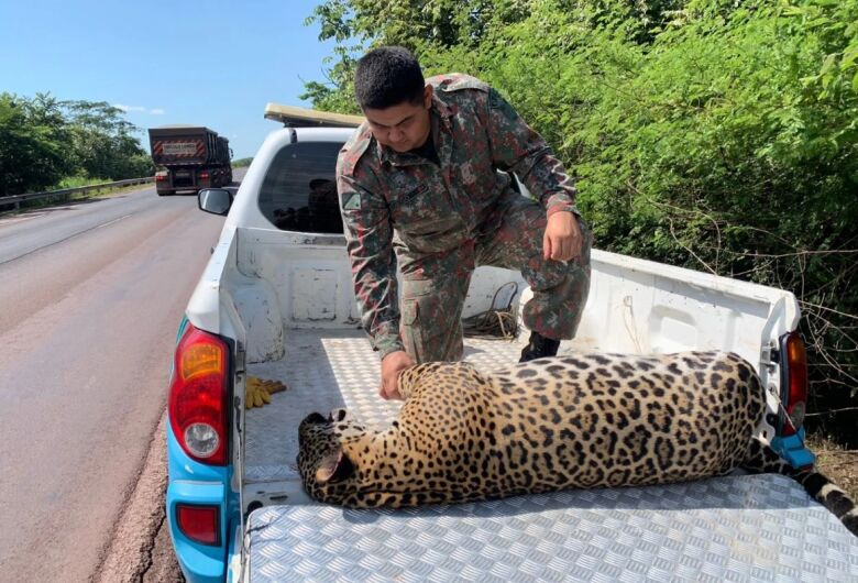 Nesta sexta-feira (27), um animal silvestre da espécie onça-pintada (Panthera onca), foi recolhido por policiais militares ambientais de Miranda, às margens da rodovia BR-262, na altura do km 625, a aproximadamente 70 km da cidade de Miranda.