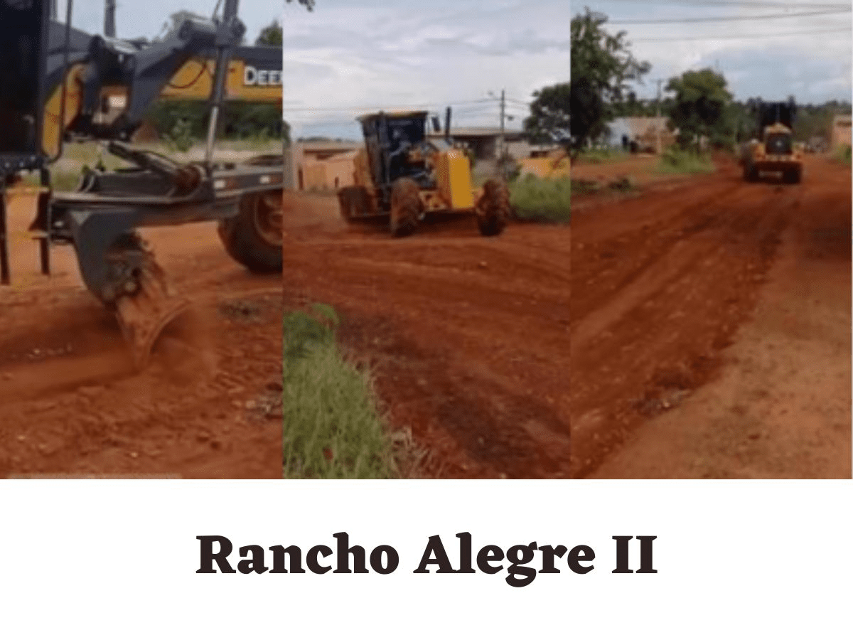 Na reta final do ano passado, o vereador Papy (SOLIDARIEDADE) apresentou uma indicação de patrolamento pedido pelos moradores do bairro Rancho Alegre II. Nesta semana, o pedido foi atendido e as máquinas da prefeitura estão arrumando as vias que estavam intransitáveis.