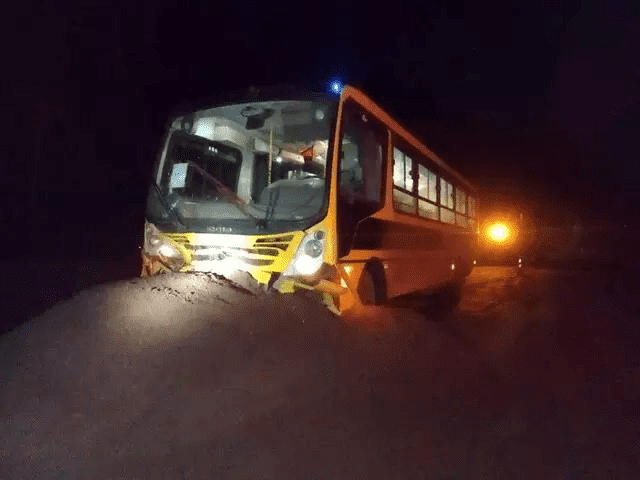 Quinze crianças ficam feridas após ônibus bater em amontoado de minério