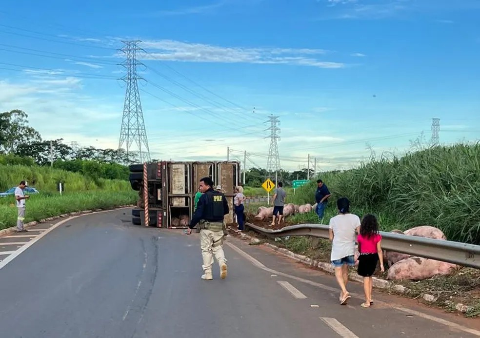 Uma carreta carregada com porcos que tombou na tarde dessa [...]