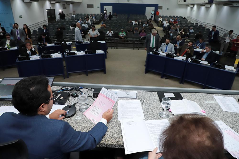 Vereadores da Câmara Municipal de Campo Grande votam dois vetos do Executivo a emendas feitas nos projetos da Lei Orçamentária Anual (LOA) para 2026 e no Plano Plurianual (PPA), durante a sessão ordinária de terça-feira, dia 10, a partir das 9 horas.
